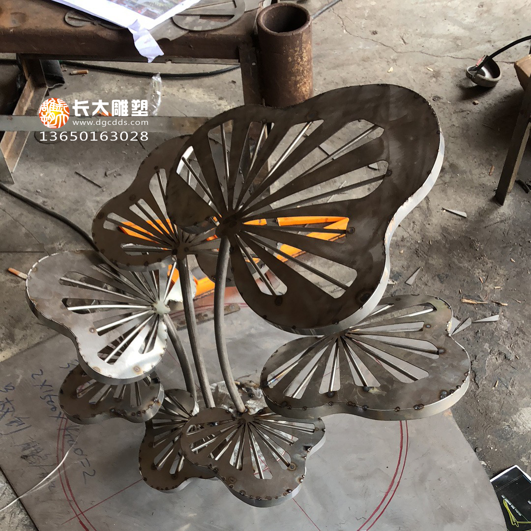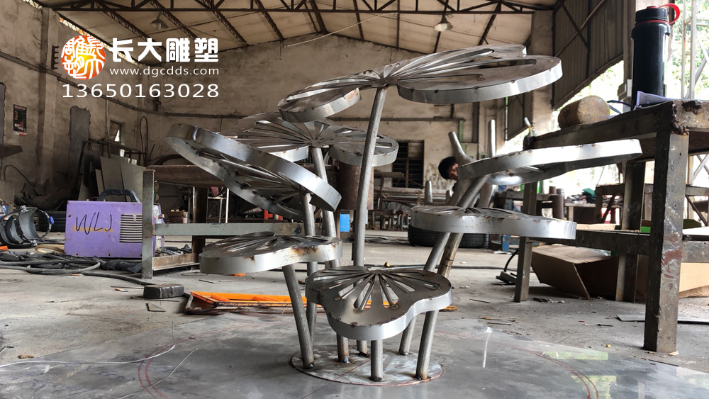 景观不锈钢花群雕塑小样制作中 欢迎来图下单定制东莞市长大雕塑工程有限公司