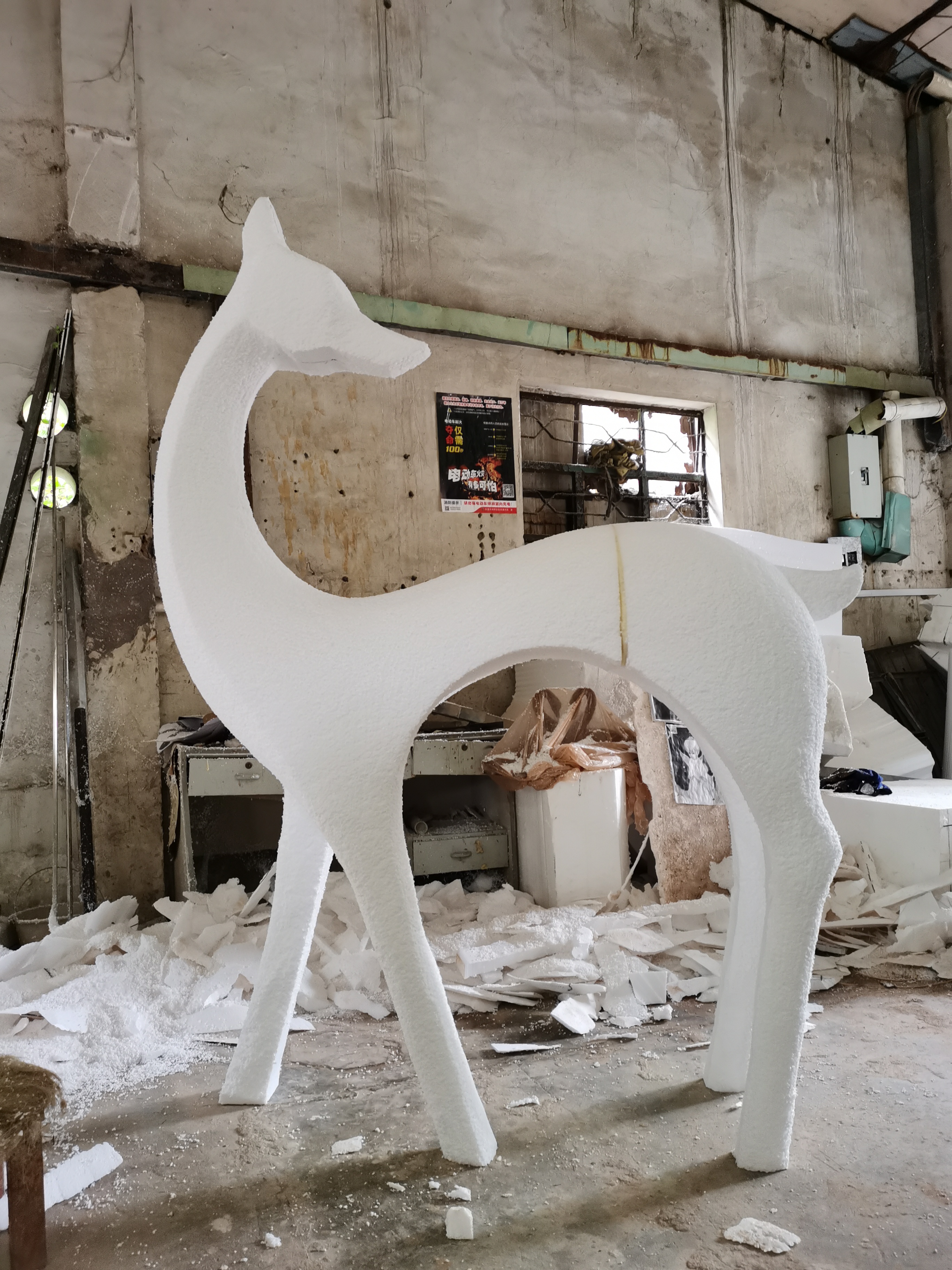 不锈钢鹿模型制作完成,开始期待成品效果 东莞市长大雕塑工程有限公司